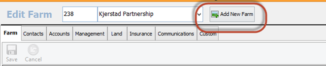 Edit Farms is also where you will enter a New Farm. To Add a New Farm, just click on the button.