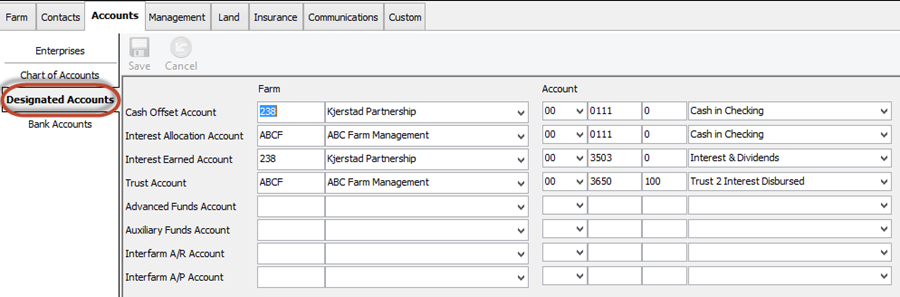 The third section under Accounts is Designated Accounts. This is where you choose your offset accounts.