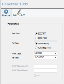 The next tax section is generate 1099 where you will actually generate the tax data for this year.