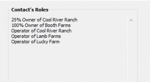 For example, if the contact you chose is an owner and they own various portions of multiple farms that information will be noted in the box. We only show owner and operator data in this informational Contact’s Roles box.