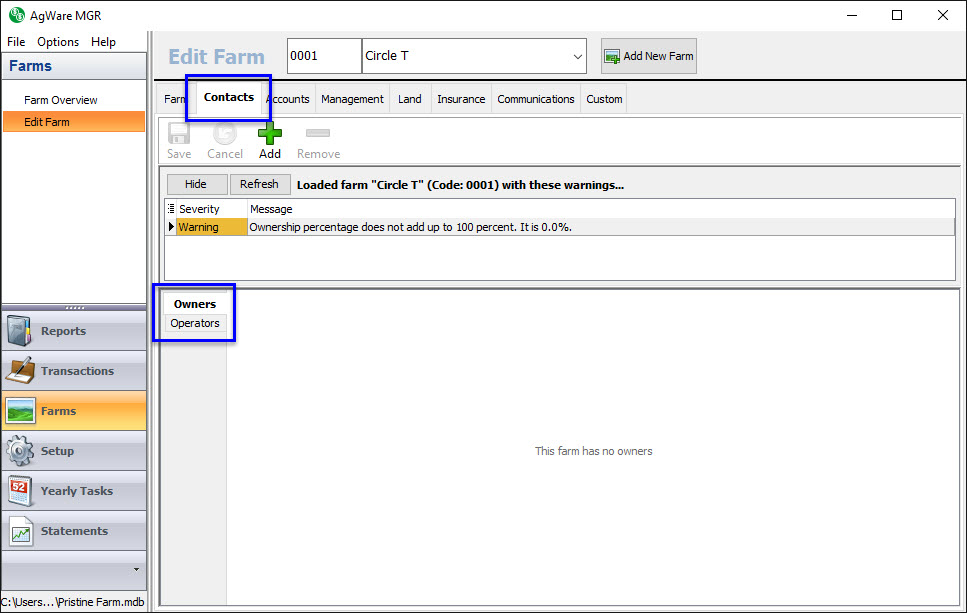 On the Contacts tab, you’ll see two sub tabs – one for owners and one for operators.