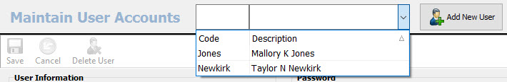 There are four main section on the Maintain User Accounts setup screen.