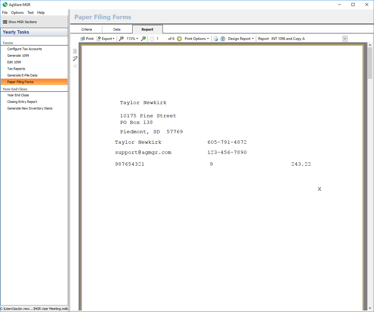 The paper filing forms tax section will assist you in creating the required reports needed to print on the paper 1096 and 1099 A filing forms. If you file your 1099 INT and 1099 MISC records electronically using the IRS FIRE system, you do not need to go through the process of creating the paper filing forms.