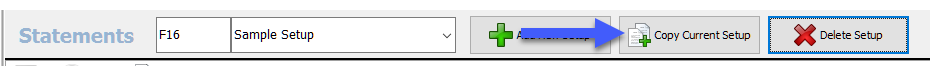 If you already have a statement setup configured, and you need to create a second setup that only requires slight changes you can choose to copy the current setup. This will create a duplicate of the current setup. It will place “_Copy” at the end of the statement code in the Code field, and “Copy of” at the beginning of the statement code in the Name field. You can change this as desired.