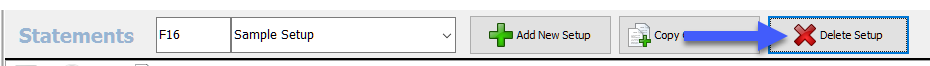 Sometimes statement setups are no longer needed, either because you created a new one or would like to simply start fresh. In this case, click on the delete setup button to completely delete your statement setup. This action cannot be undone.