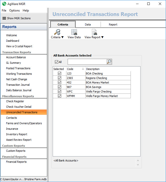 Unreconciled Transactions Report